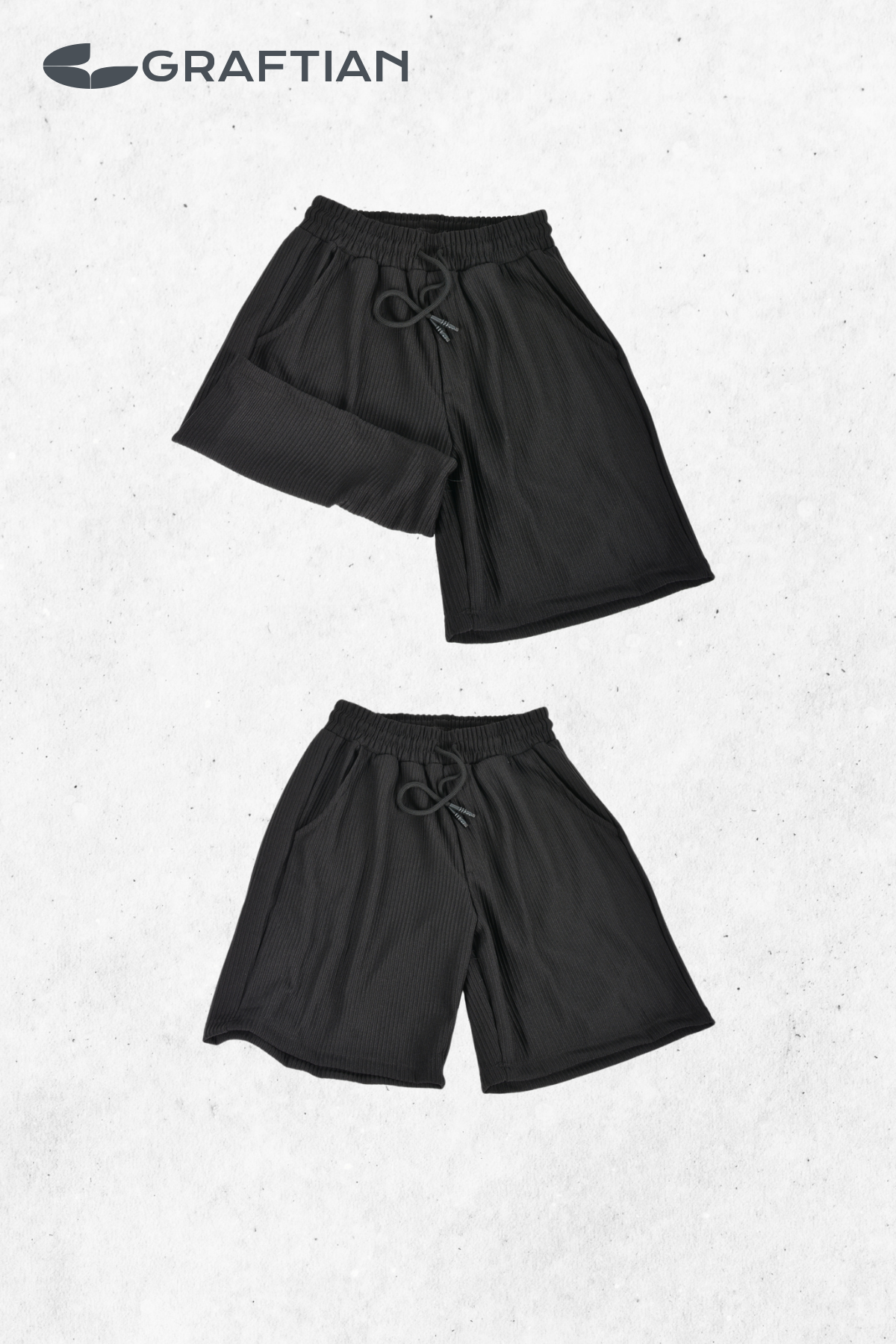 Ottoman Fitilli Basic Şort – Graftian – XL, Siyah